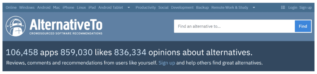At the time of this writing, there are more than 100,000 apps on the AlternativeTo website.