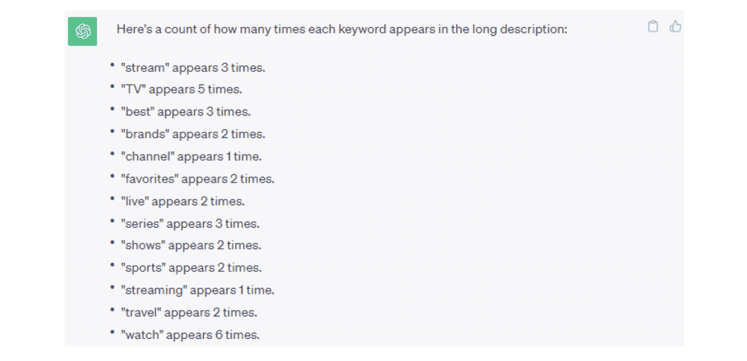 After conducting keyword research and selecting the highest-density keywords from the keyword pool, it’s time to work on discovery+’s long description. That is when we can get help again from ChatGPT.
